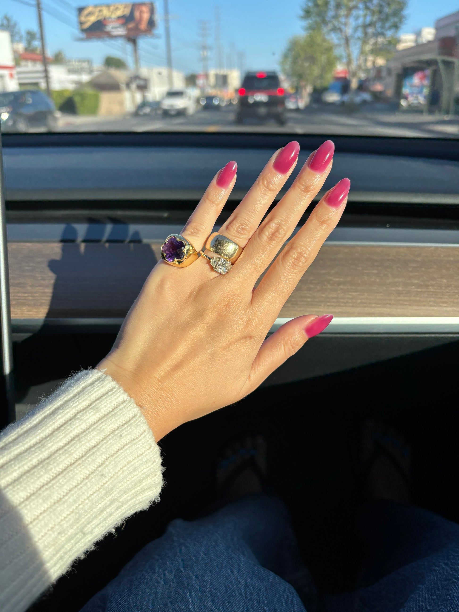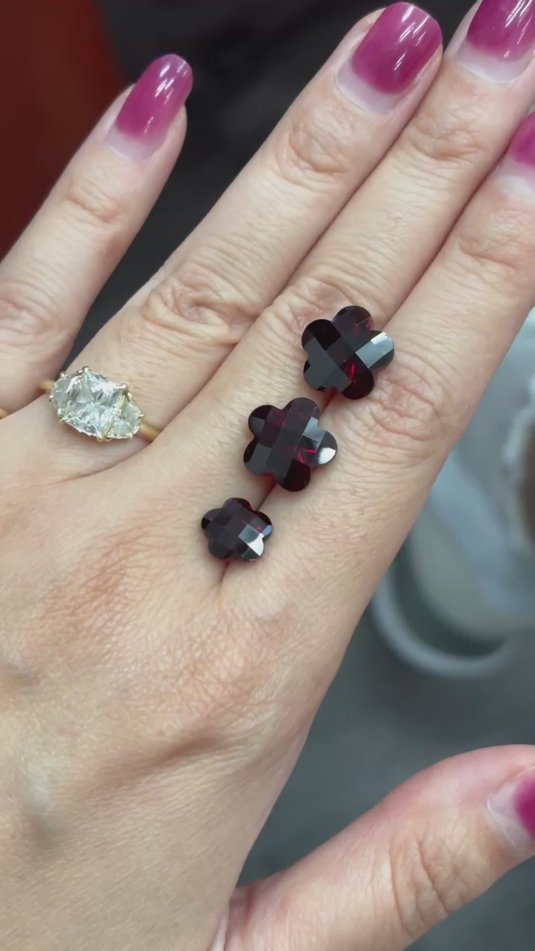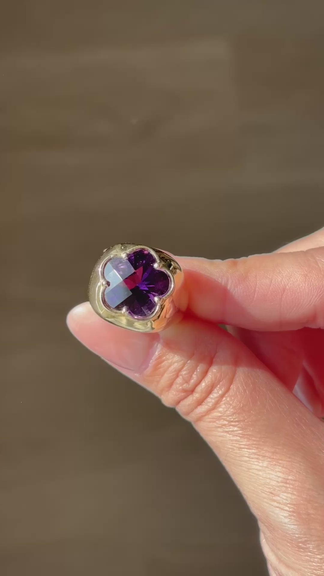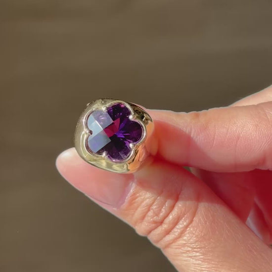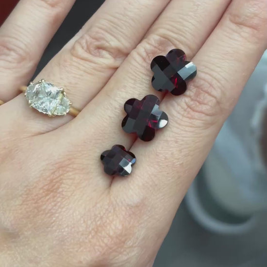 I'm so excited to offer up a RING with my own design and I'm obsessed with it!! Introducing my super chunky, girly, maximalist, heavy pinky ring, or as I've been referring to it, my FAPR or F*** A** Pinky Ring)!!!! I had this made for myself using a vintage floral amethyst stone from a limited quantity batch so I didn't think I could get my hands on more... until now! I have ~ 3 ~ flower shaped garnets in 2 sizes! You can choose either large (the same size as mine) or small. These are the only stones I have so once they're gone, they're gone!